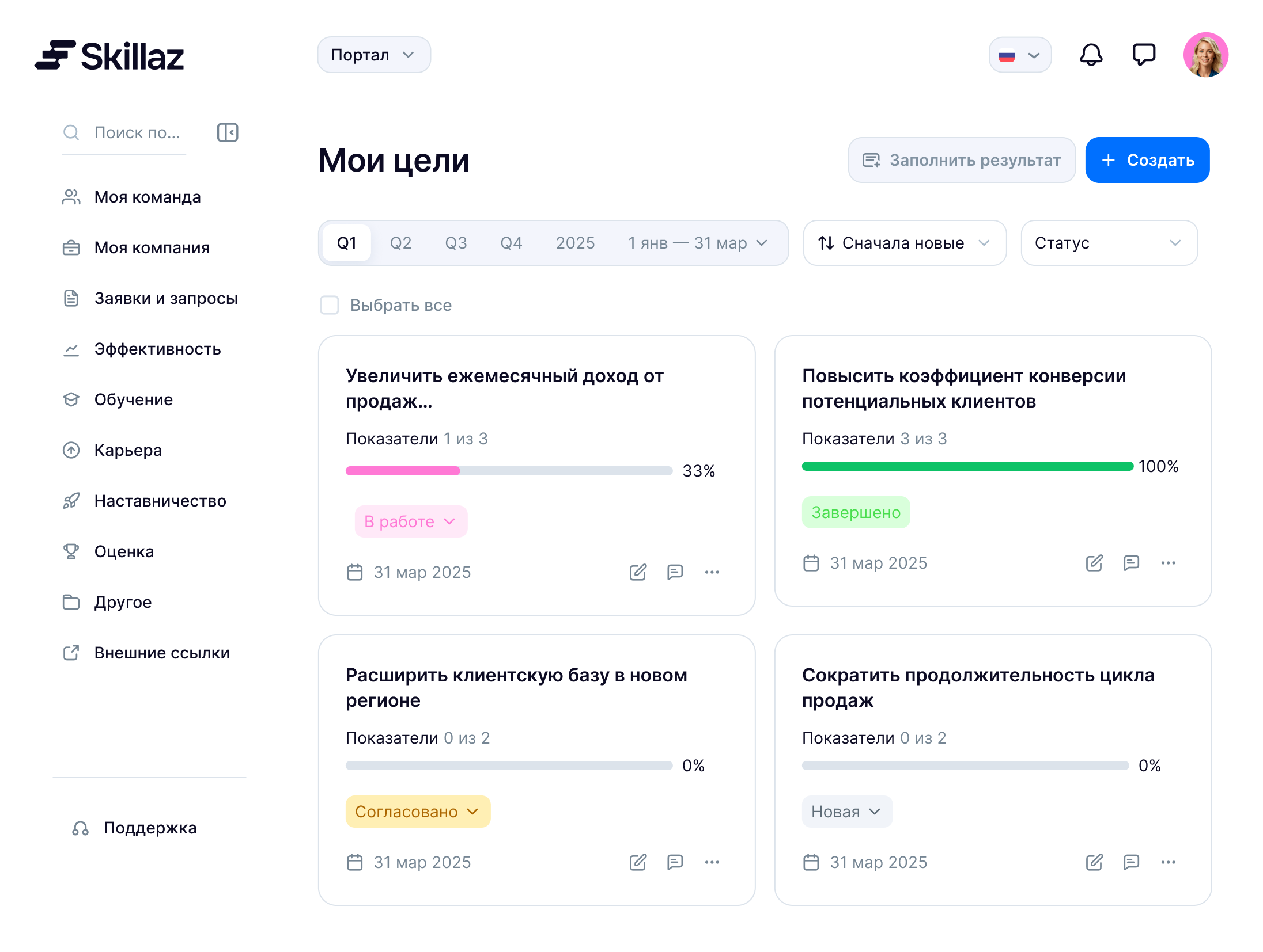 Любой сотрудник может привязать личную цель к целям компании, а автоматизация рутины позволяет сосредоточиться на развитии и стратегических задачах